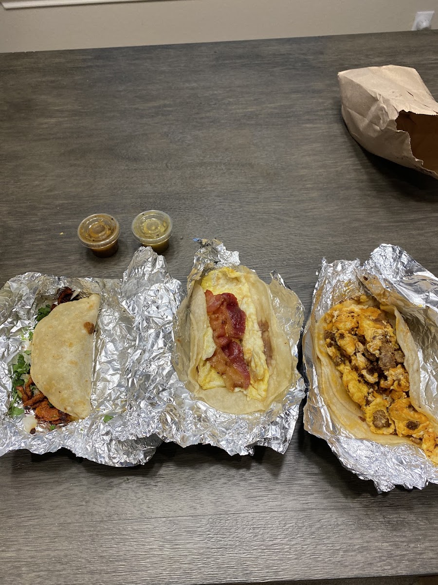 They make really good breakfast tacos as well lunch tacos. Really nice staff. Not that long of a wait either. Favorites: potato and egg, fajitas tacos and they make really good salsa. No seating but that’s okay I always take on the go. If you’re in a hurry they usually have extra tacos in the Cmart you can buy. But only potato and egg and bean and egg.